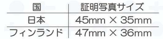 証明写真ボックスでは、フィンランドの証明写真サイズを用意することはできないので、